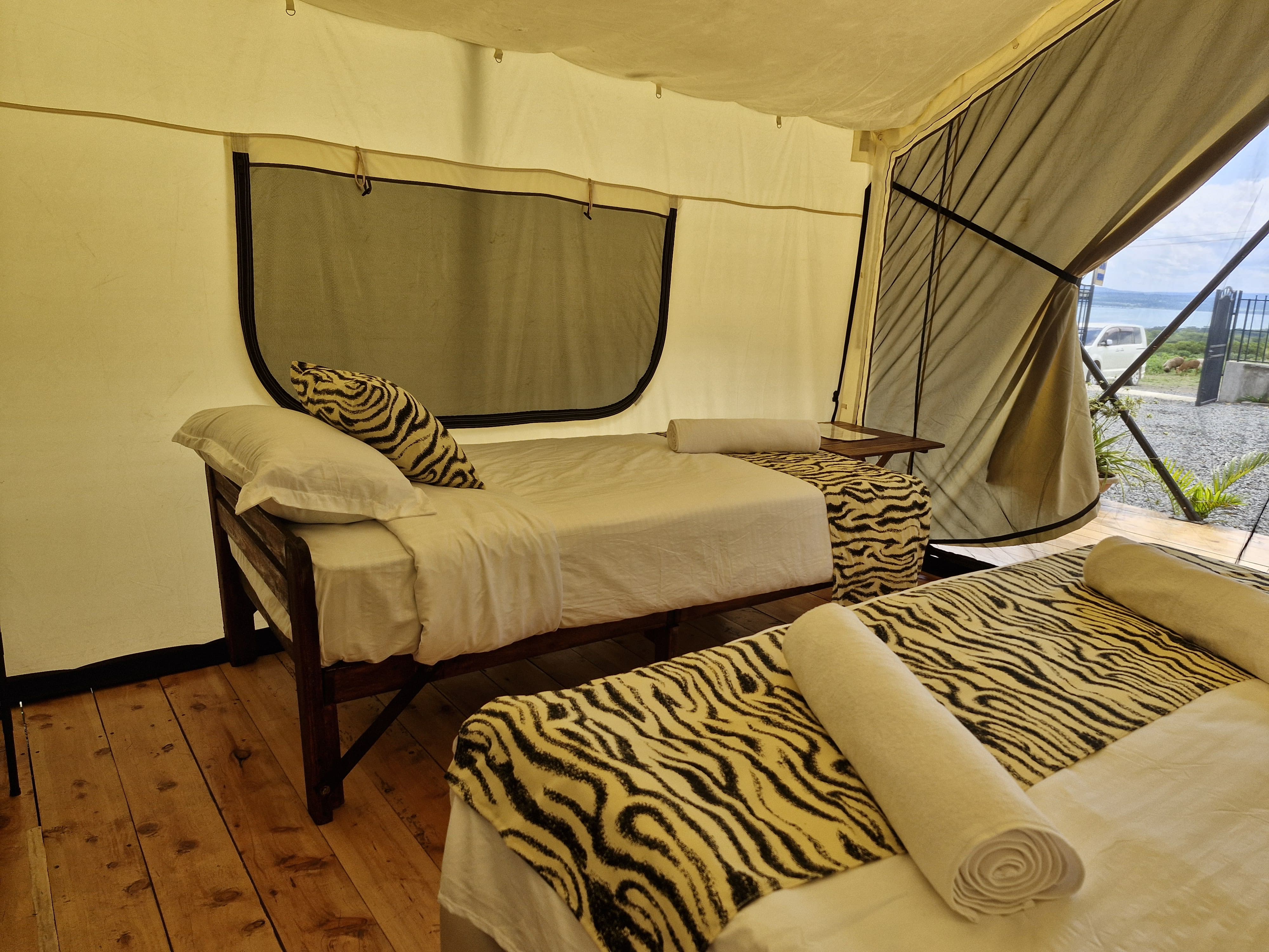 Experience luxury and tranquility with our three ensuite glamping tents and a cozy container sleeping space, designed for ultimate comfort and style. Enjoy the convenience of a fully equipped kitchen and an elevated observatory deck, perfect for dining while soaking in panoramic views of Lake Elementaita and the iconic Sleeping Warrior.